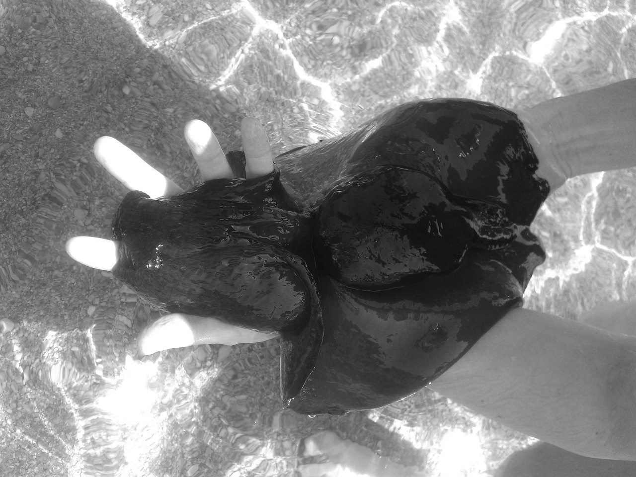 «Вопрос к знатокам: что за моллюск? На вес особь грамм 300-500, внутри твердый панцирь, плавает, как скат, у дна, на цвет черный. Поймано у берегов Черногории».