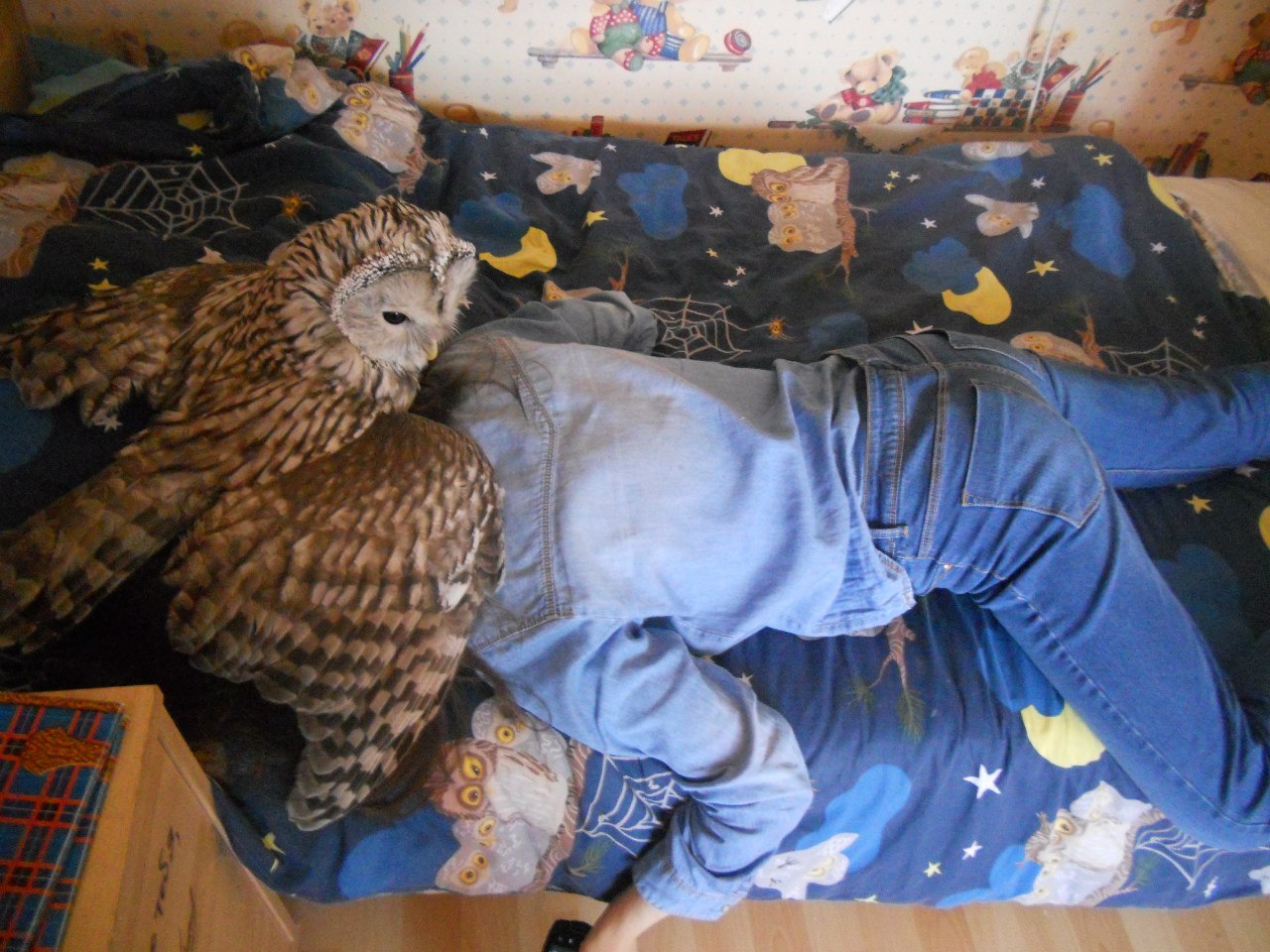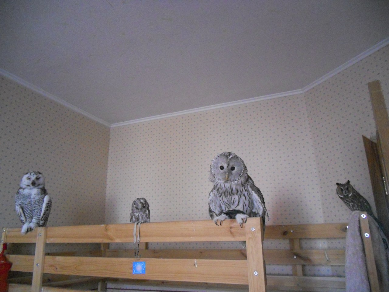 «Я самый ленивый исследователь из всех, потому что я наблюдаю за поведением животных не выходя из дома. На фото мои домашние жители: полярная сова, домовой сыч, мохноногий сыч, ушастая сова, длиннохвостая неясыть, моноклевая кобра, капский варан. Список не полон».